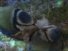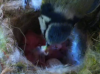 Another attack! Mrs. B. fights back with a pecks and screeching against the unseen bird you can hear flapping and scrabbling. It's like a horror movie. After a while Mr. B. comes in with some food and they get back to normal. At the end, a chick emerges from a quivering pile of moss at the bottom right of the screen.