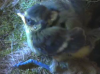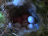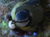 Another attack! Mrs. B. fights back with a pecks and screeching against the unseen bird you can hear flapping and scrabbling. It's like a horror movie. After a while Mr. B. comes in with some food and they get back to normal. At the end, a chick emerges from a quivering pile of moss at the bottom right of the screen.