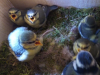 Two of the chicks recreate that spaghetti eating moment out of Lady and the Tramp, except with a caterpillar.
